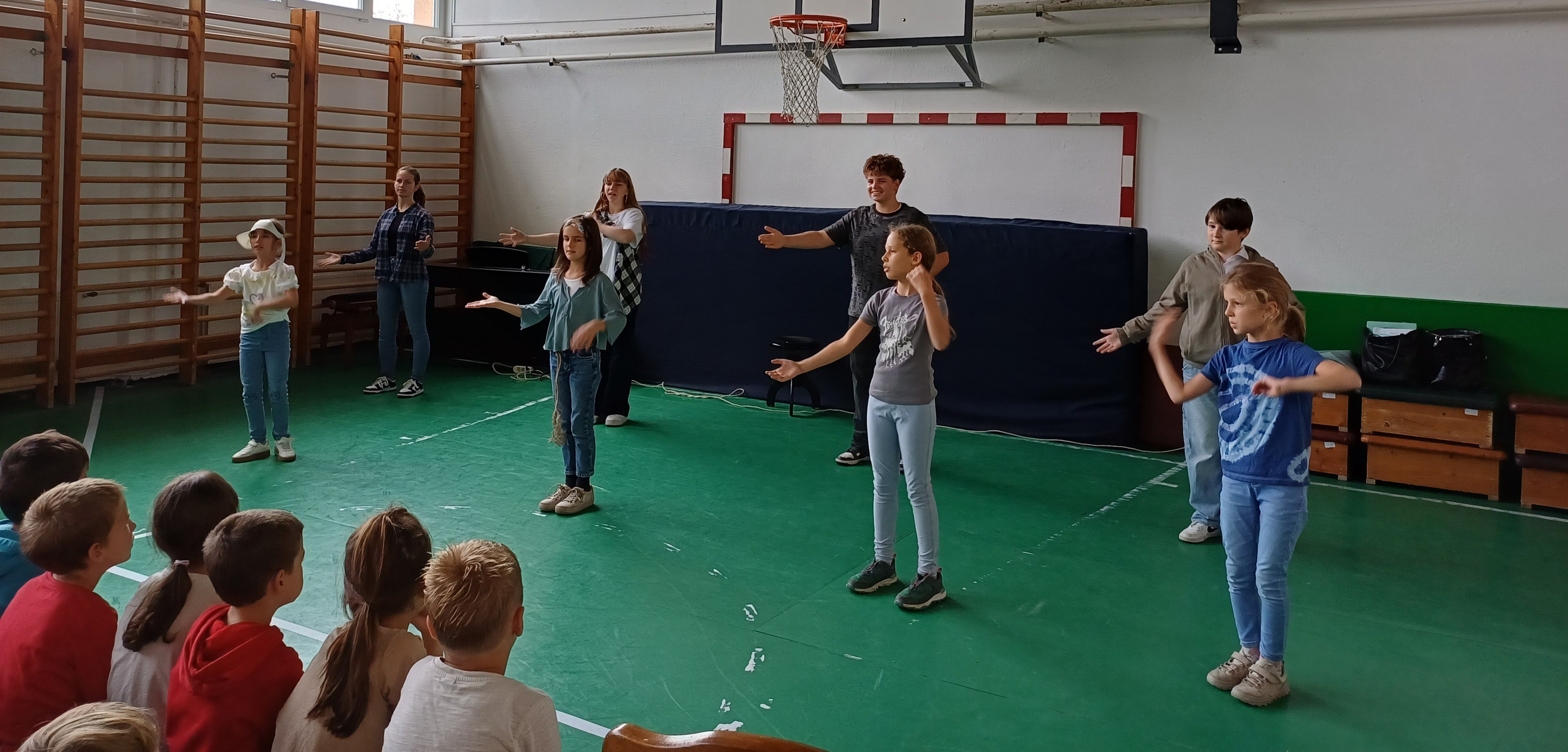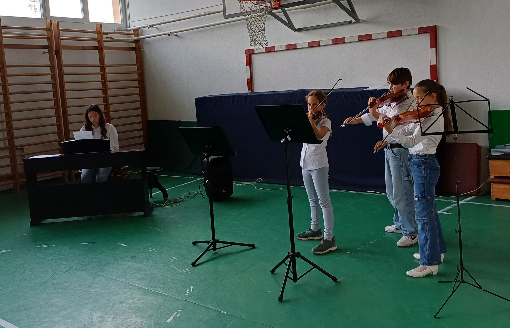 Ennek alkalmából a zeneiskolás gyerekek hangversenyt adtak ma délelőtt iskolánkban.