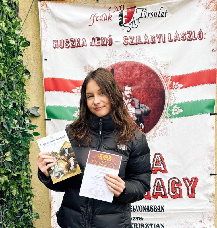 Burnoczki Leoni, a Piarista Iskola egyik tehetséges diákja részt vett az Irodalmi Rádió téli-karácsonyi antológiájának bemutatóján, amelyet a Fedák Sári Színházban tartottak.